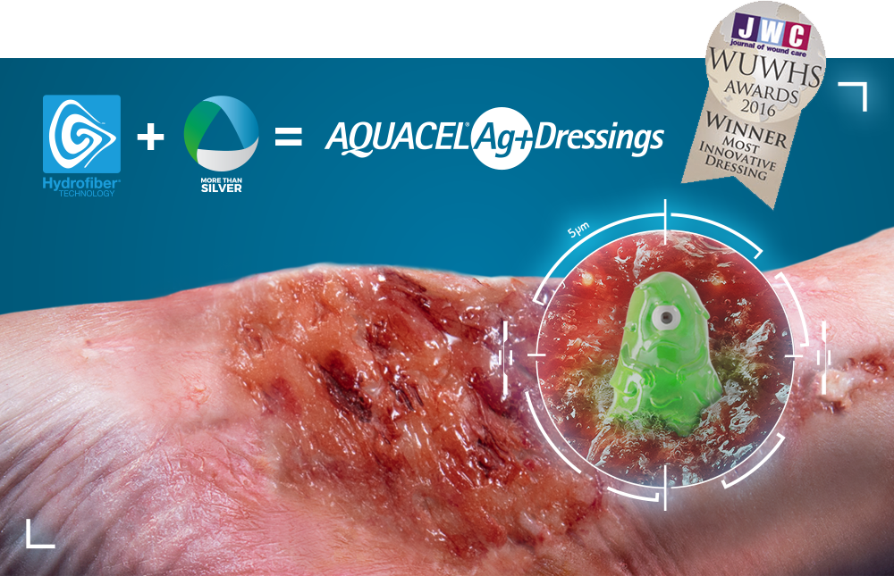 AQUACEL® Ag+ dressings comprise two powerful technologies working in synergistically to manage the key local barriers to wound healing – exudate, infection and biofilm.
