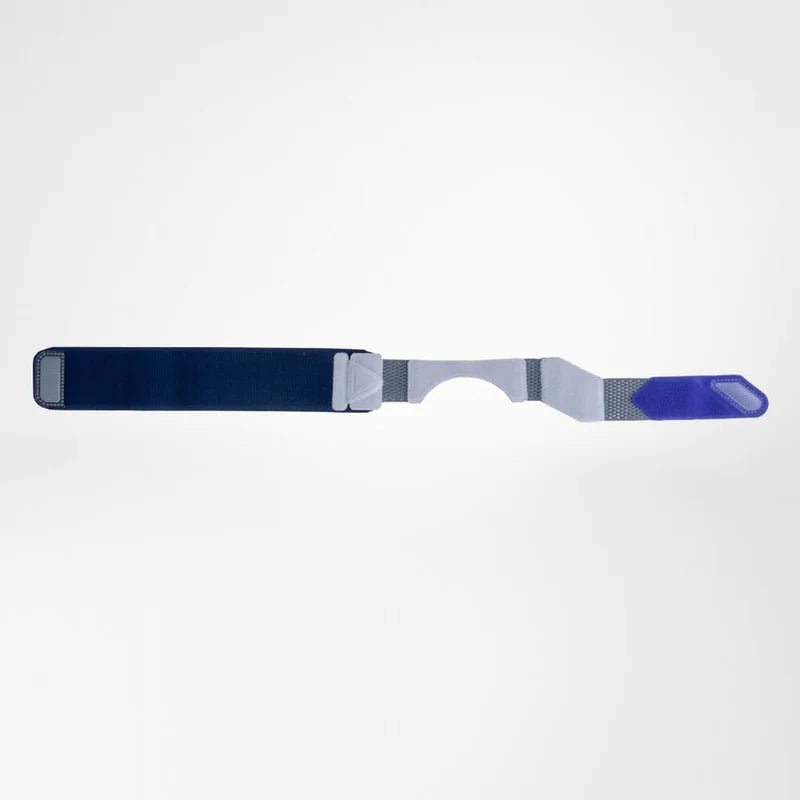 Starting from the forearm, the partly elastic strap system is wrapped around the palm and wrist and tightened to limit movement in palmar flexion and ulnar abduction. This ensures targeted relief without restricting gripping. The stabilizing effect can be reduced to suit treatment by removing one part of the strap and instead wrapping the elastic fleece band around the wrist. Alternatively, the entire strap system can also be removed.