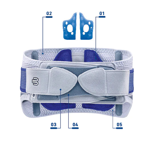 Sacroiliac joint dysfunction accounts for 25 % of all cases of back pain in the lumbar spine area. With the SacroLoc® back orthosis, a combination of elastic and non-elastic knit stabilizes and relieves pressure on this zone, while a two-part rigid visco-elastic pad on the back massages pain areas. This stimulates circulation at certain points, relieving cramps and helping to release tension.