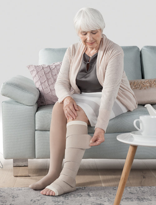 The Juzo Compression Calf Wrap offers high working pressure (30-60 mmHg) in a versatile garment that features a reversible design, easy pull tabs, minimal overlying straps and special notches that resist gapping and bulk. The Juzo Calf Wrap can be worn by itself or with the other Juzo compression wraps for the leg.