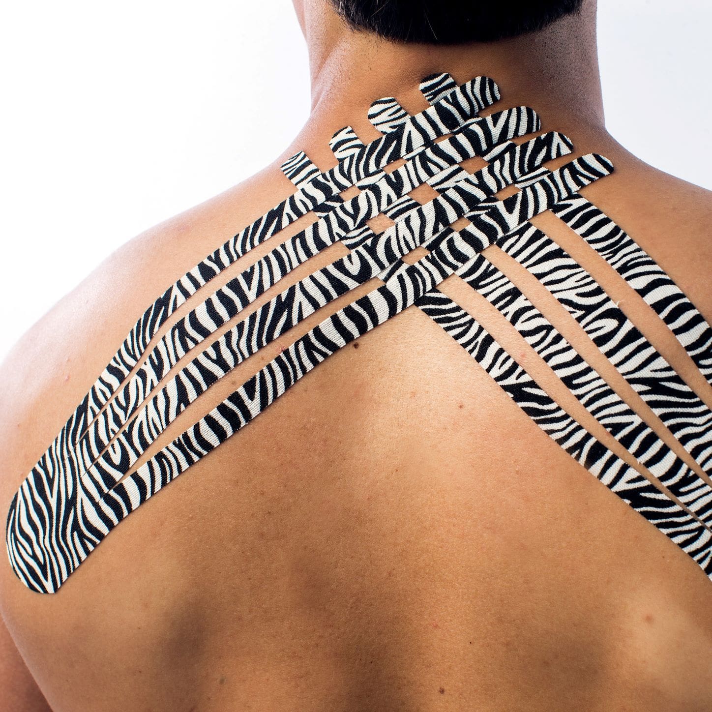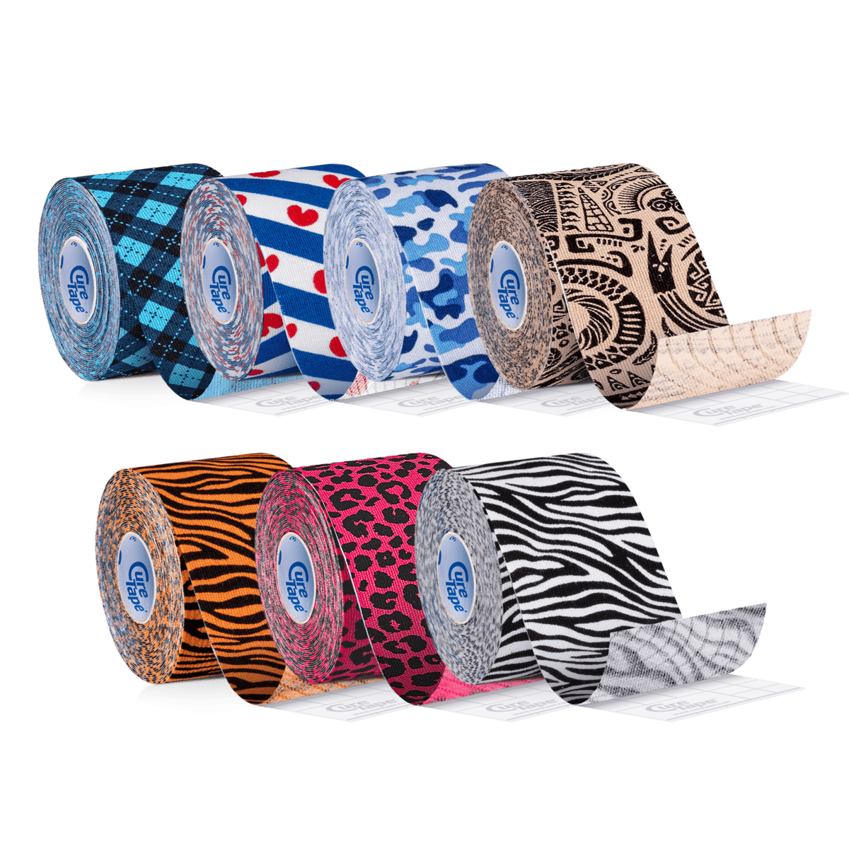 The CureTape ART kinesiology tape 5cm x 5m is comprised of six different designs. CureTape ART kinesiology tape design is manufactured according to a unique printing process, the dye is completely absorbed into the fibers. The cotton will continue to feel smooth and supple. CureTape ART is the only kinesiology tape where this unique printing technique for these designs is used. In this way it also CureTape ART complies to the highest quality standard of THYSOL kinesiology tape. The elastic cotton is provided with a ventilating hypoallergenic acrylic adhesive. The various prints are also very good to combine with the existing colors of CureTape CLASSIC.