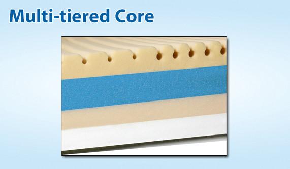 Beneath it, three high resiliency layers offer progressively firmer support. This multi-tier design puts the most patient-friendly surface directly next to the skin, and the most dense material farthest away. The layers deflect in stages, allowing the Atlas to accommodate the widest possible range of weights and still remain comfortable.