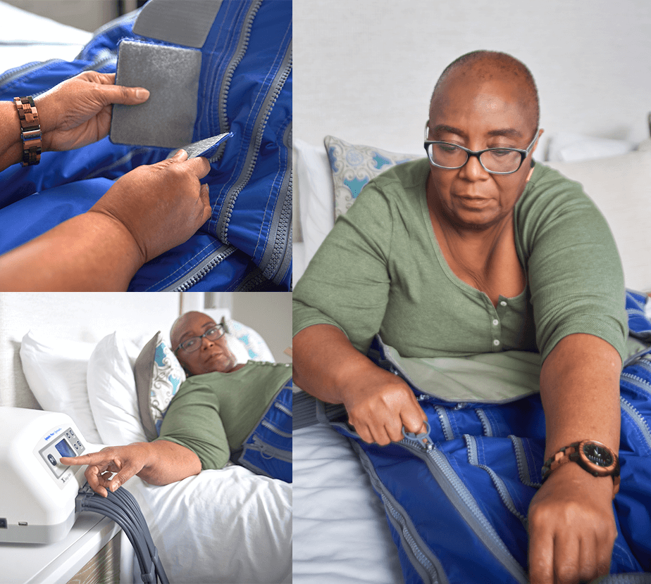 Designed on the principles of manual lymph drainage, these garments treat the lower body including the entire trunk, abdomen, hips, and genital area. Patented Pretherapy™ allows for proximal therapy in the trunk preparing the lymphatics for more effective drainage. Our patented “custom boot” feature forms a boot to fit each patient’s individual leg length and foot shape.