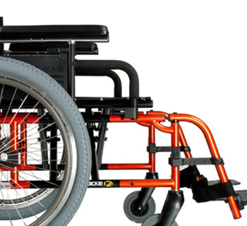 The M6 utilizes a double locking crossbrace and stabilizer bar to minimize frame flex and create a more rigid ride quality. This ensures that more energy transfers directly from your arms or feet to the axles for the most efficient propulsion.