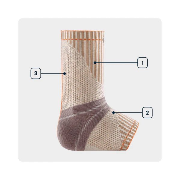 The Merino Ankle Compression Sleeve provides relief and stabilization of the joint through targeted medical compression. The constant compression stimulates the metabolism and activates the surrounding muscles, improving proprioception and joint coordination. The sleeve offers a high level of wearing comfort thanks to mulesing-free Merino wool which regulates temperature and wicks away moisture.