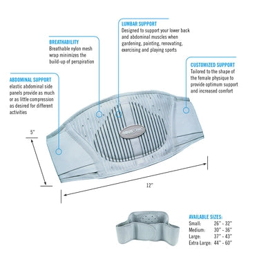 CUSTOMIZED BACK BELT SUPPORT: Tailored to the shape of the female physique to provide optimum support and increased comfort