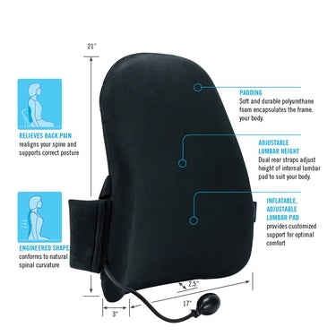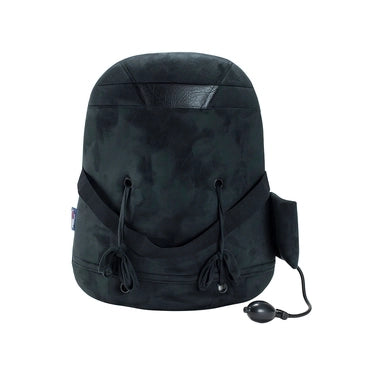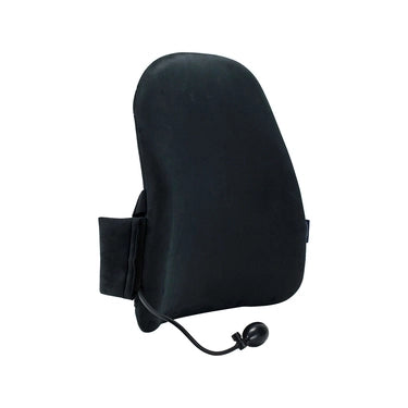 Hand pump inflates or deflates the lumbar pad to refresh lower back when sitting for long periods.