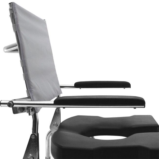 - Receiver brackets under seat are visible from the rear of the chair, making it easier to slide the pan into place