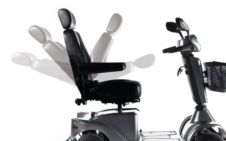 Finding your perfect seating position for those long journey’s is effortless with the easy-to-adjust luxury seating. Adjust the seat height, depth and recline to suit your own unique driving position. The flip-up comfort armrests are also width, angle and depth adjustable – and combined with the seat rotation ensures that transferring in and out of your mobility scooter is effortless.
