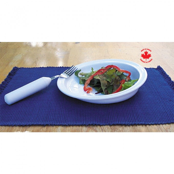 This 9″ (23cm) scoop plate promotes independence at meal time, especially for the visually impaired. It allows the user to push food against the plate’s high back wall and onto their cutlery. The entry side is low for ease of use. The wide outer rim is useful to grasp the plate while scooping food onto cutlery. The plate has a skid resistant base. Breakproof plastic. Microwaveable and top rack dishwasher safe. Also available in White and Blue.