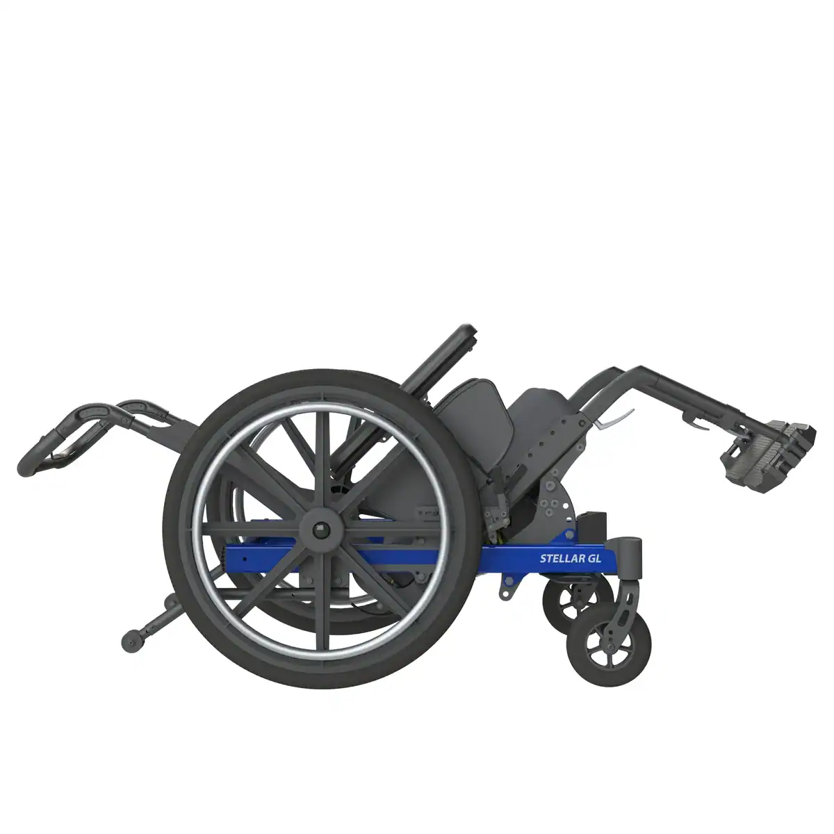 The Stellar GL is a versatile 45° low knee-rise tilt chair. It promotes self propulsion, table access, and participation in mobility related activities of daily living. The rigid frame provides superior stability and maneuverability.