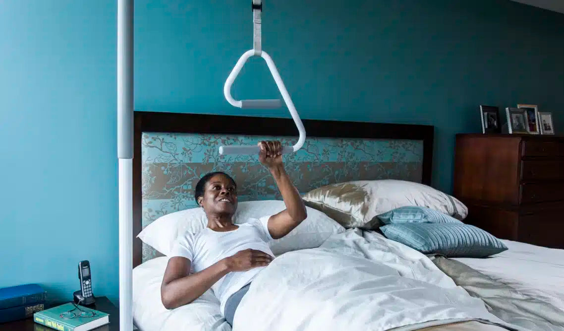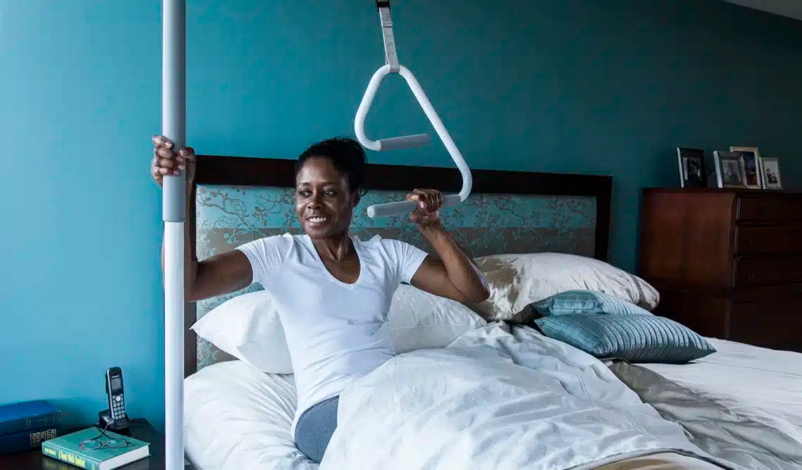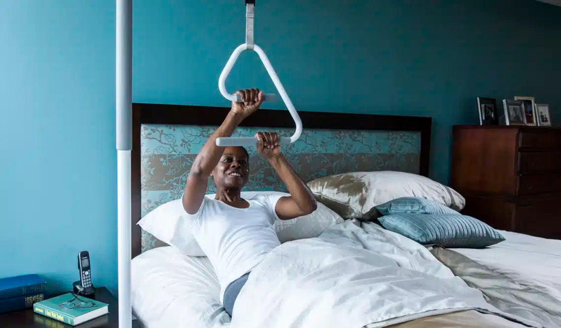 Likes rungs on a ladder, the SuperTrapeze™ has two offset hand grips allow you to climb up to a sitting position in a natural and ergonomic way.