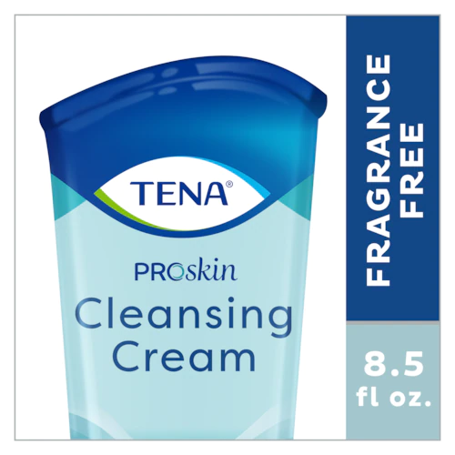 This gentle alternative to soap and water cleanses, moisturizes and soothes fragile aging skin. Convenient formula with no need to rinse with water. TENA ProSkin Cleansing Cream can be used when changing incontinence products or for full body cleansing. The caring cream is dermatologically tested, helps maintain the skin’s natural pH level and is fragrance free.