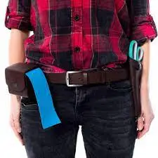 A high-quality leather scissor holster. An easy-to-wear and efficient scissor holder to keep your most important taping equipment within reach.