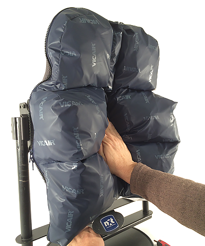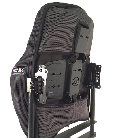 The Optima Armadillo Back support has a three section modular shell with a Vicair back cushion with multiple pockets, designed to adjust to fit the unique contour of the user’s spine.